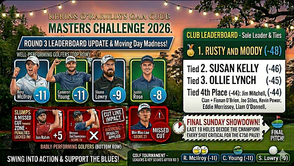 The third round of the Augusta Masters is complete, and "Moving Day" certainly lived up to its expectations! With the final round looming, our Kerins O'Rahillys Masters Challenge leaderboard has seen a massive shakeup at the very top.