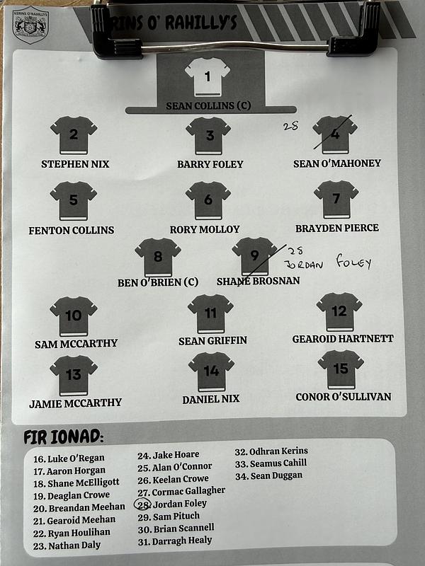 Team: Seán Collins, Stephen Nix, Barry Foley, Jordan Foley, Seán O’Mahony, Rory Molloy, Brayden Pierce, Ben O’Brien, Fenton Collins, Sam McCarthy, Seán Griffin, Gearóid Hartnett, Jamie McCarthy, Daniel Nix, Conor O’Sullivan.